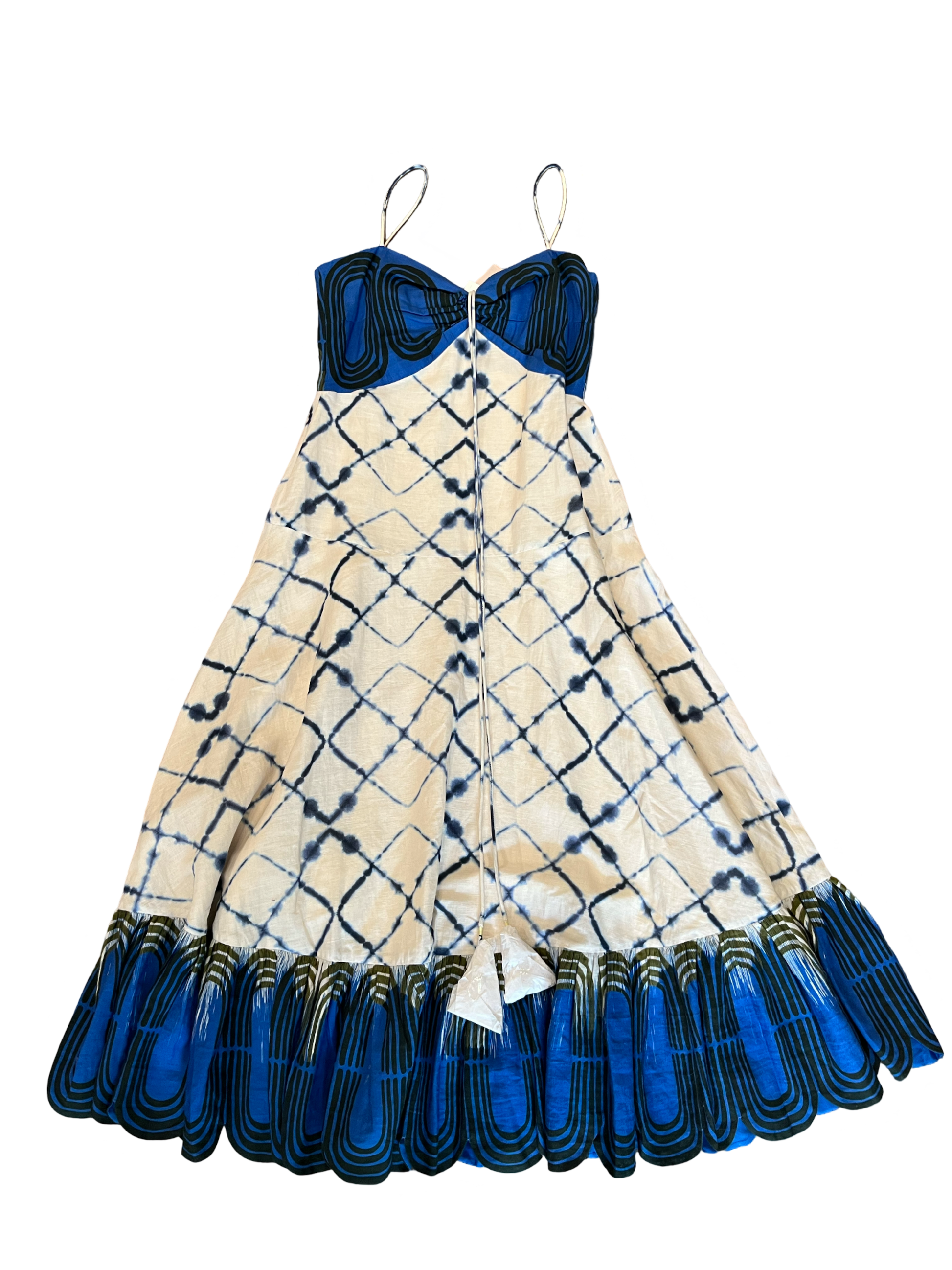 Alexis Nuri Linen Blend Halter Rorschach Blue Dress