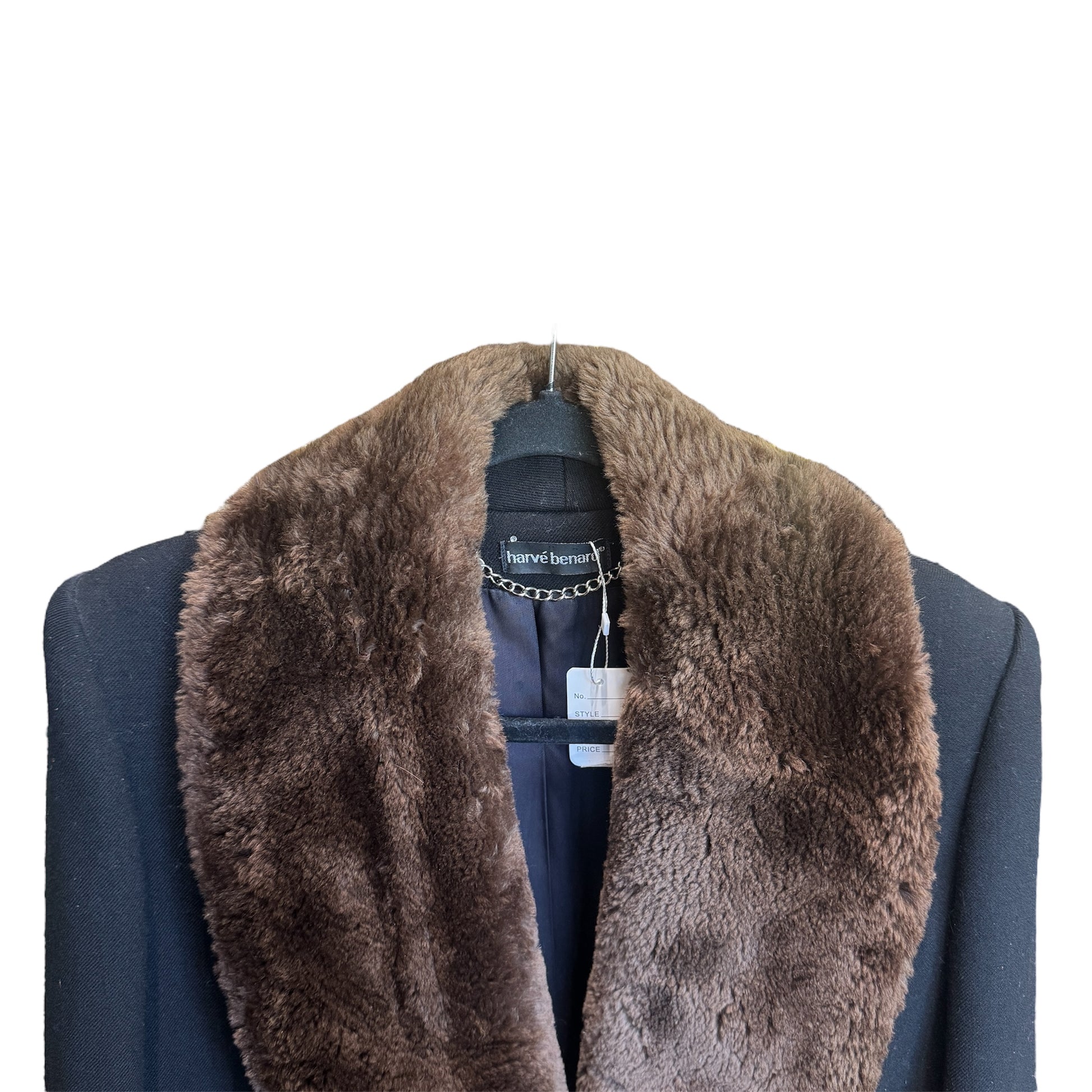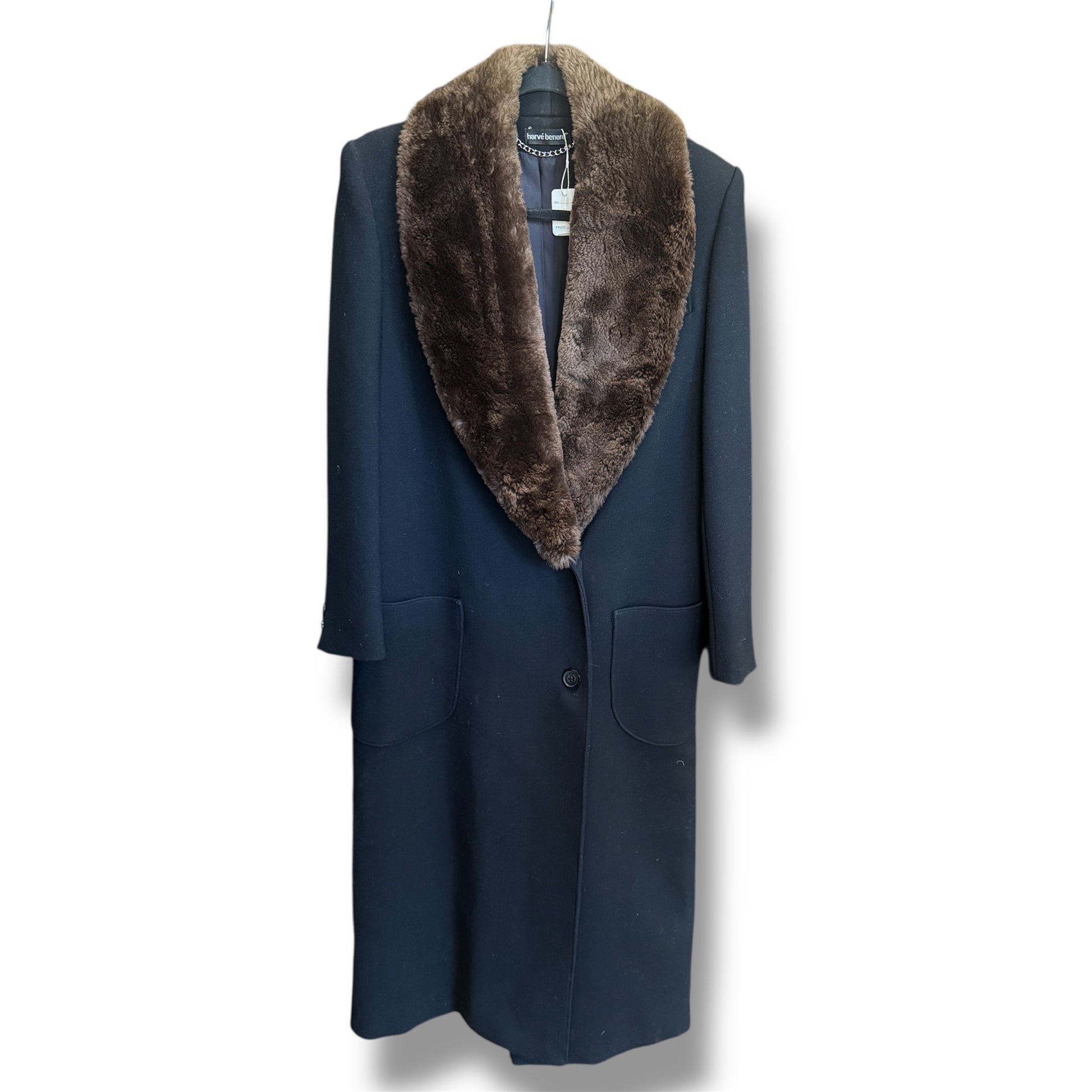 Harve Bernard Vintage Long Wool Fur Collar Black Coat Size 12