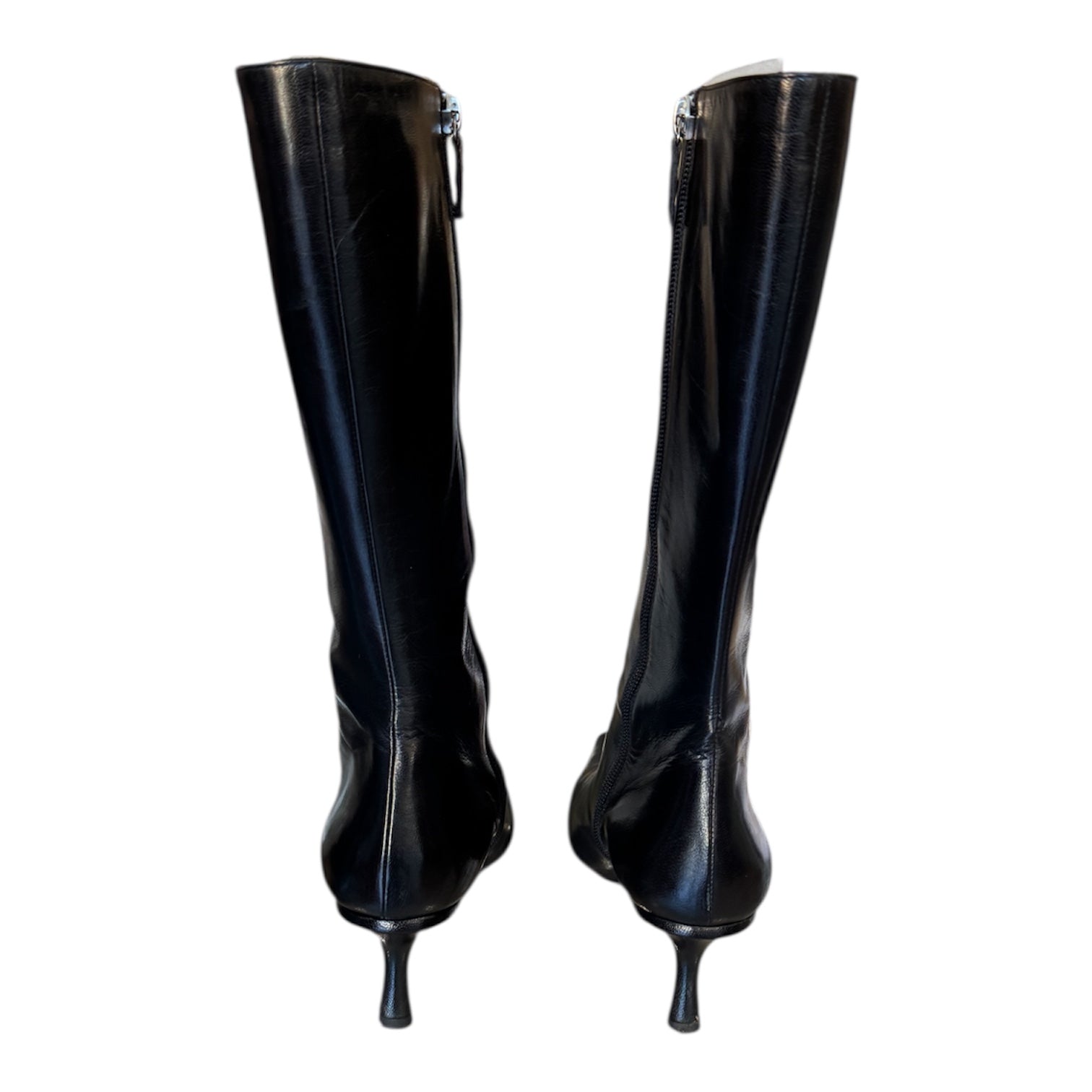 Jimmy Choo Black Mid Calf Leather Heeled Boots Size 37