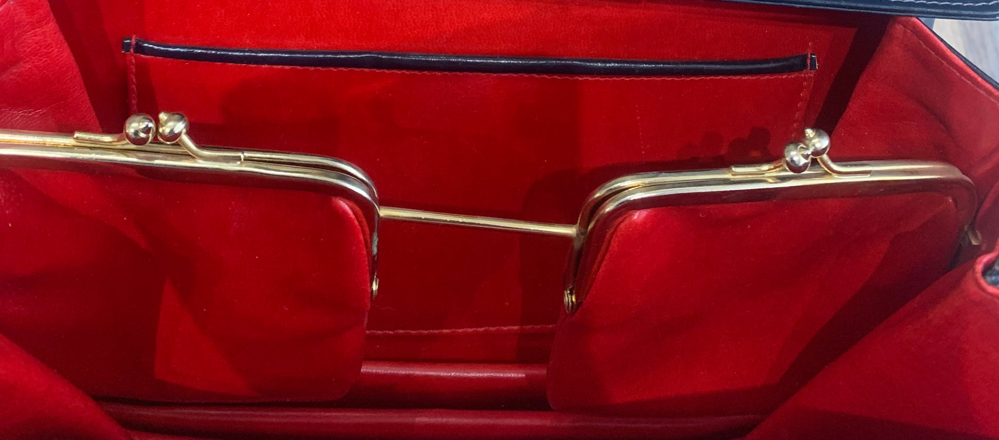 This authentic 1950's Scuola del Cuoio handbag showcases exquisite blue leather with elegant gold embossing, reflecting timeless craftsmanship. Its great vintage condition highlights its durability and classic style, making it a unique addition for collectors and fashion enthusiasts seeking a statement piece with genuine heritage.
