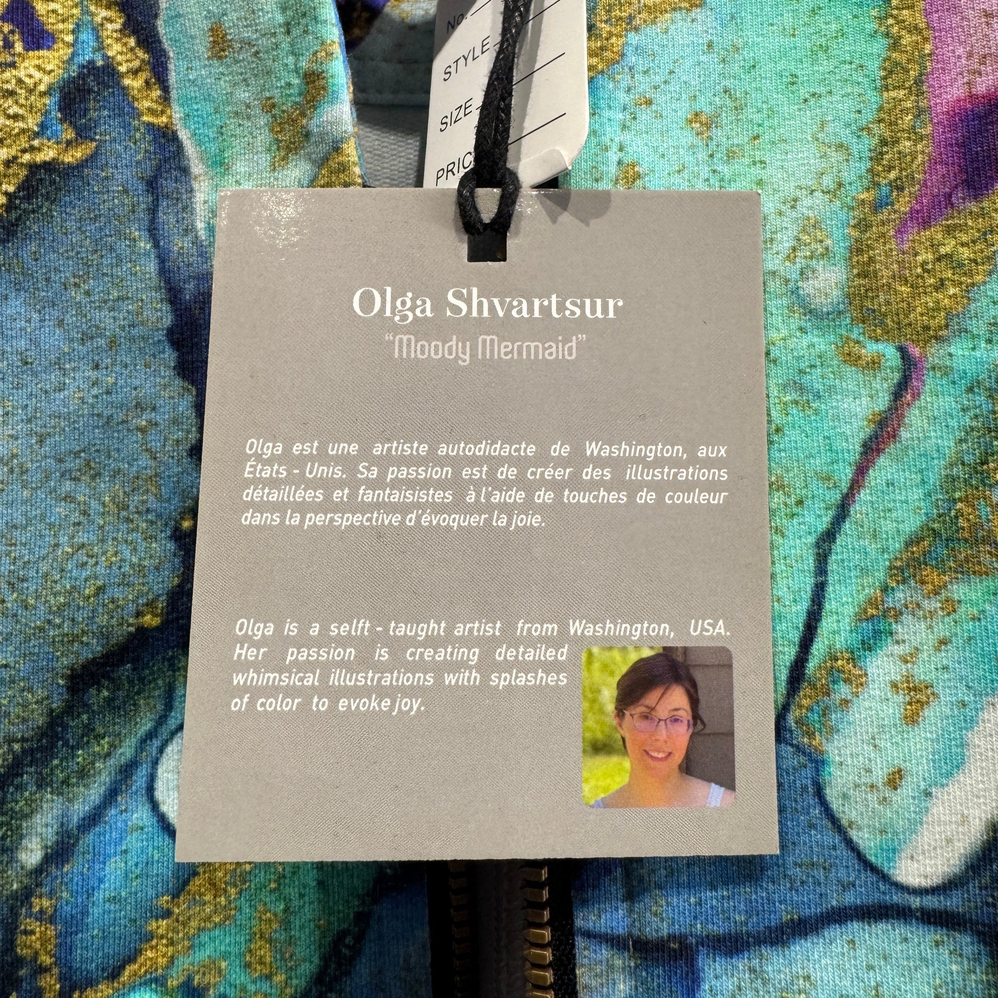 The Simply Art By Dolcezza Josep Costa Vila Jacket brings an artistic edge to your wardrobe with its vibrant "Moody Mermaid" multicolor pattern. Sized medium for a comfortable regular fit, this cotton blend jersey blazer features a short jacket length for a contemporary, streamlined look. Designed for ease, it requires only gentle hand washing, while functional pockets and classic button details enhance its refined appeal. Ideal for a range of occasions—from casual events to cocktail gatherings—and suitable across all seasons, this elegant piece adds versatility and style to any collection.