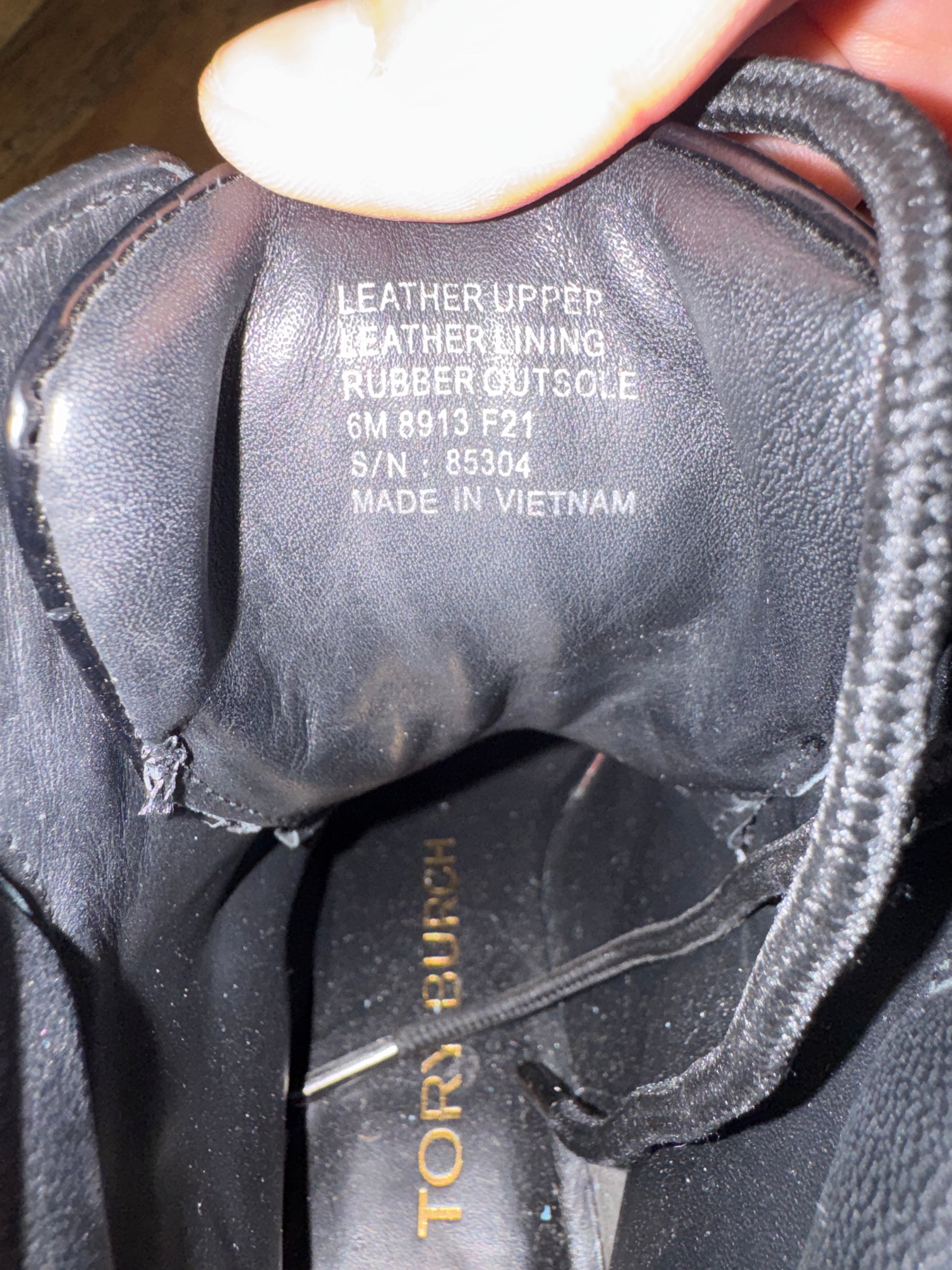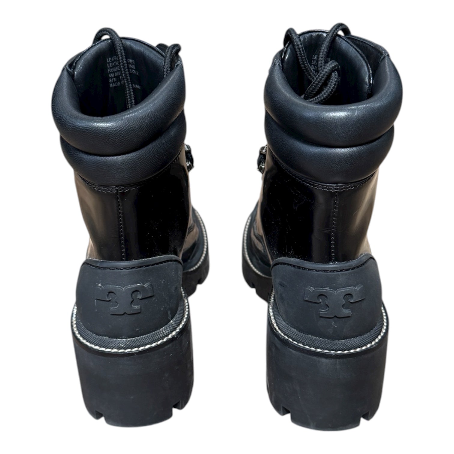 Tory Burch Leather Lug Sole Hiking Boots Black Size 6