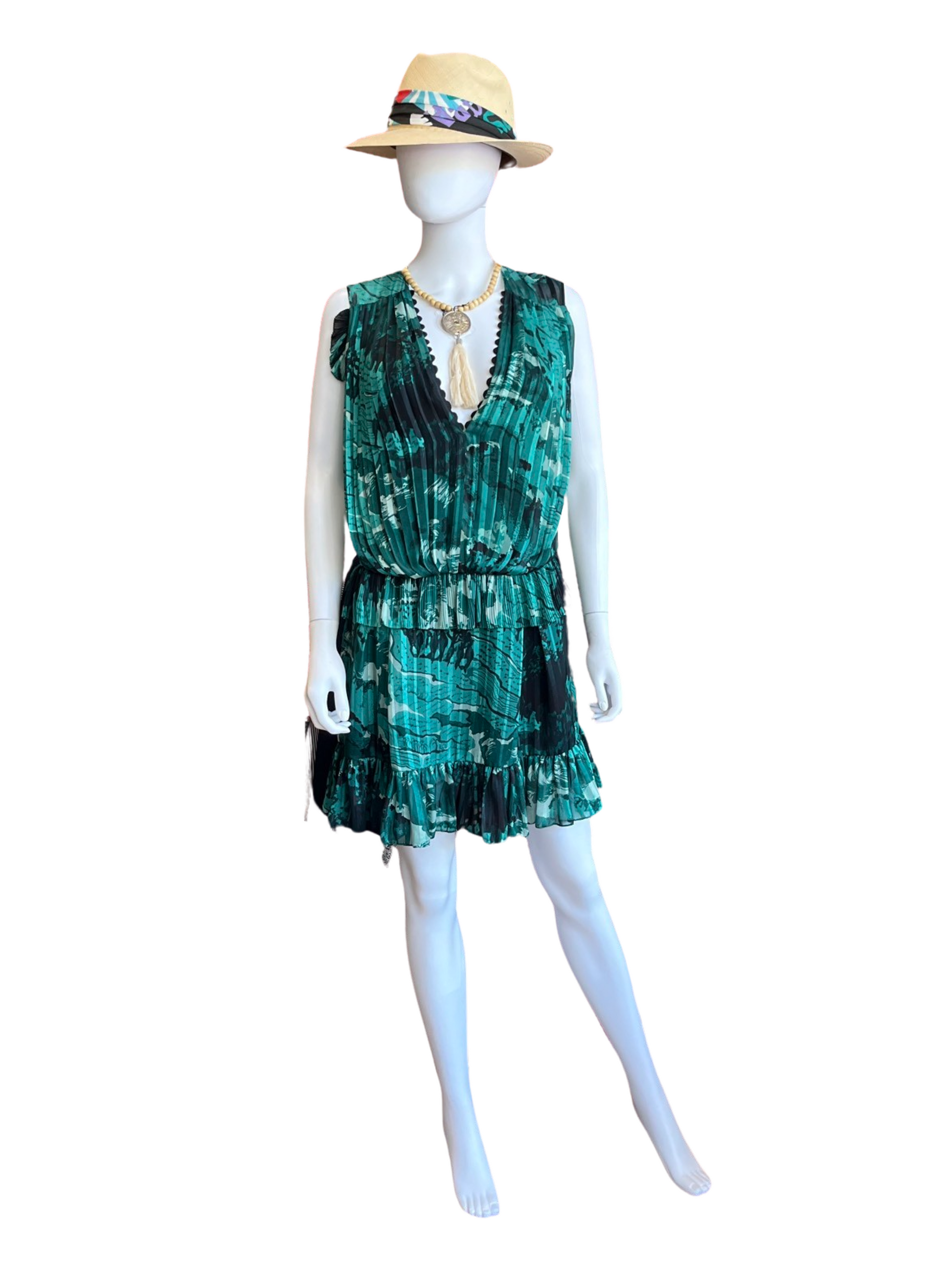 Authentic, Never Worn and Consigned Green Pleated Mini Dress