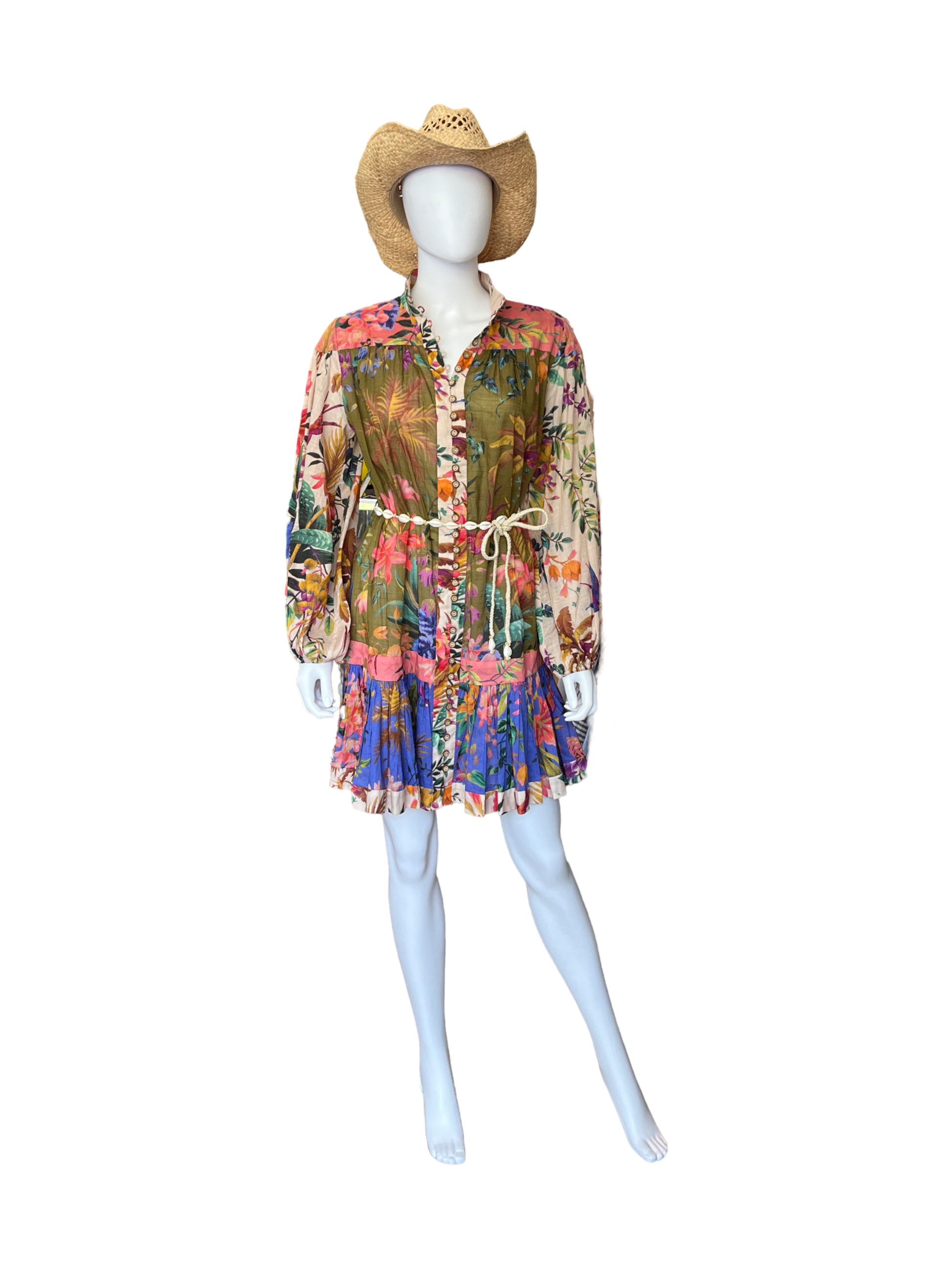 Zimmermann Tropicana Print Belted Mini Dress Size 8 USA